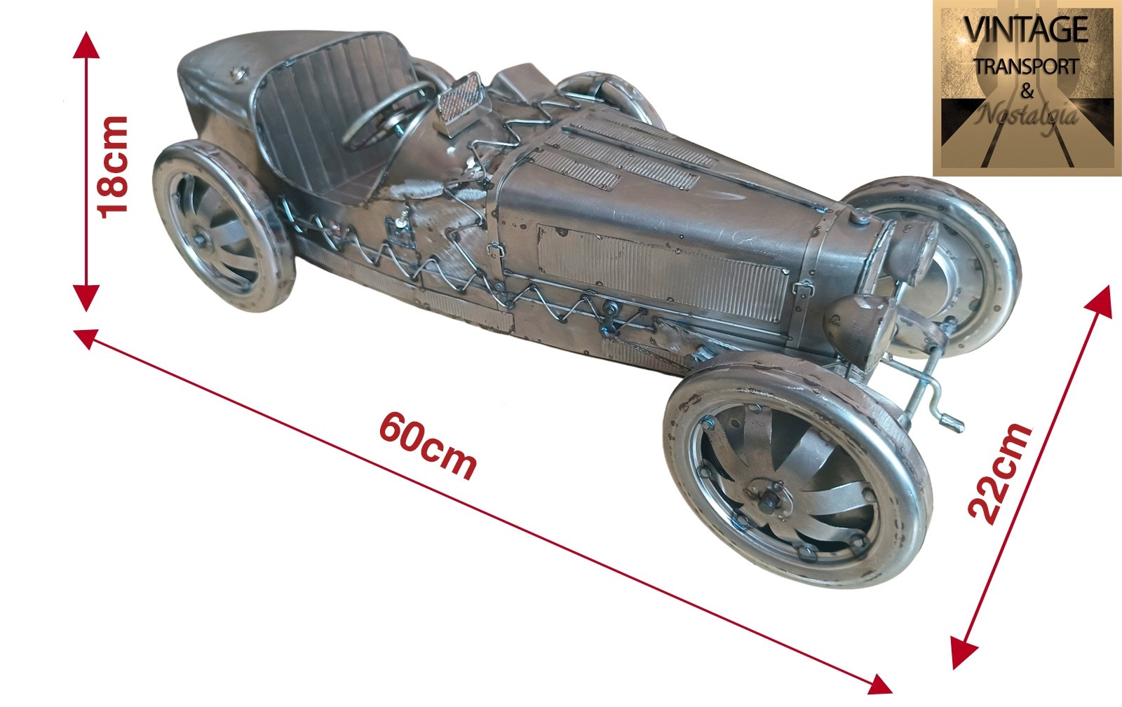 Polished Metal 1920's l Vintage Boat Tail Grand Prix Race Car - 60cm