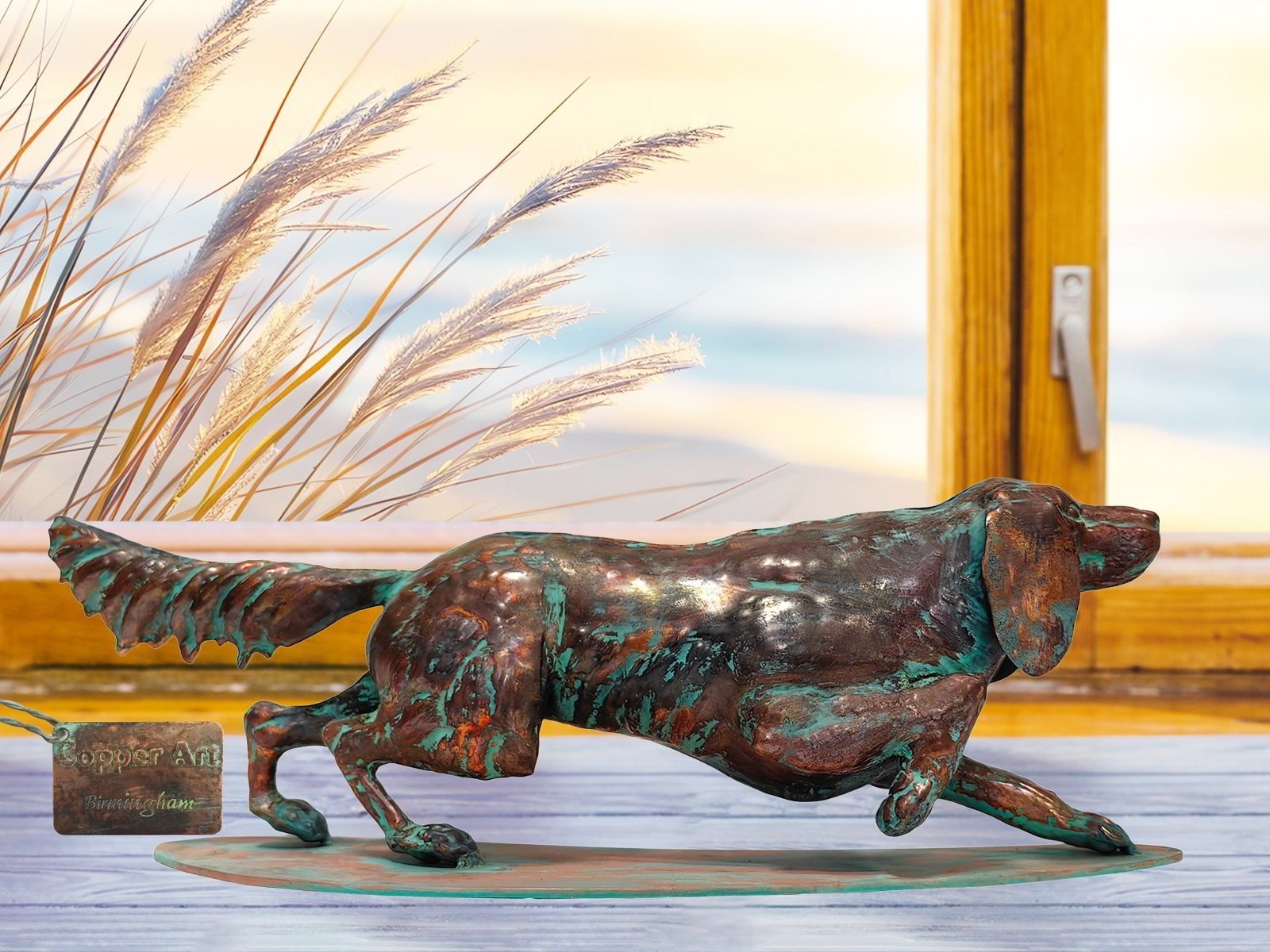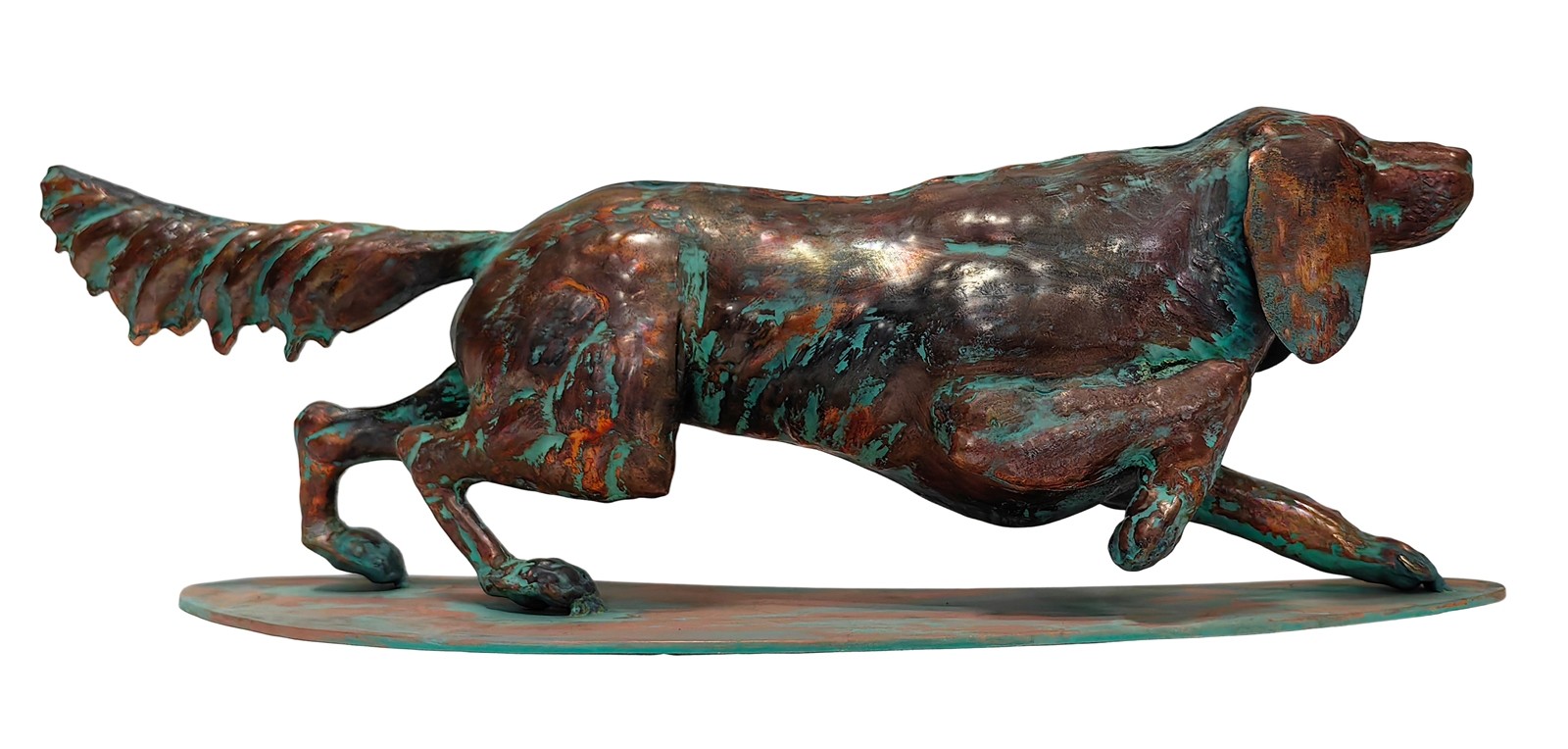52.5cm Aged Copper/Verdigris Finish 3D Dog Statue On Heavy Meta