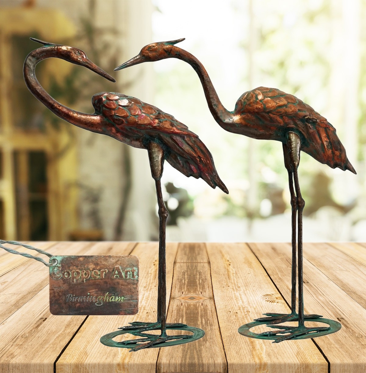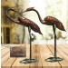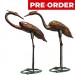77.5cm. Aged Copper/Verdigris Finish 3D Pair of Cranes Statues On Heavy Metal Base