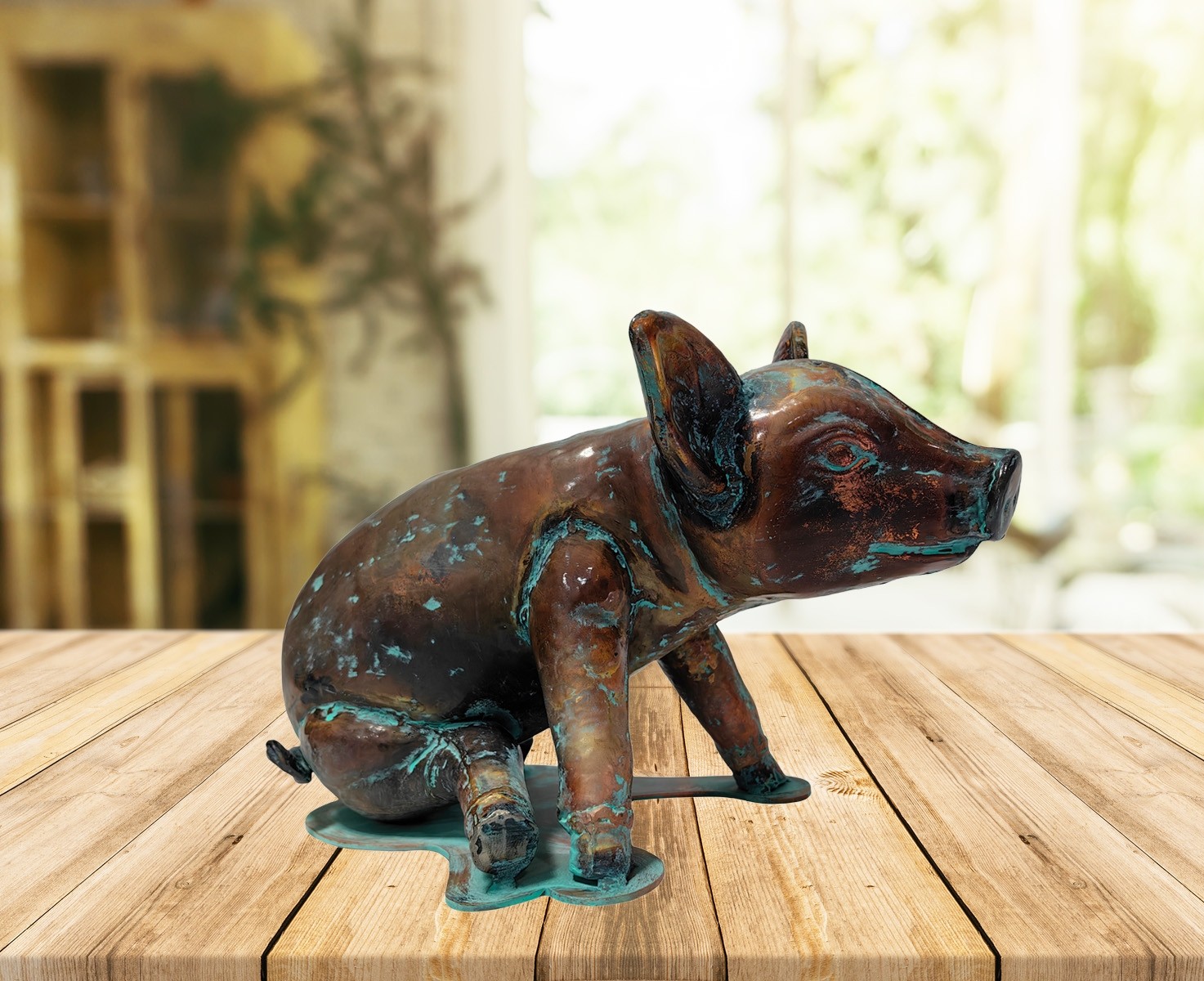 48cm Aged Copper/Verdigris Finish 3D Sitting Pig Statue On Heavy Meta