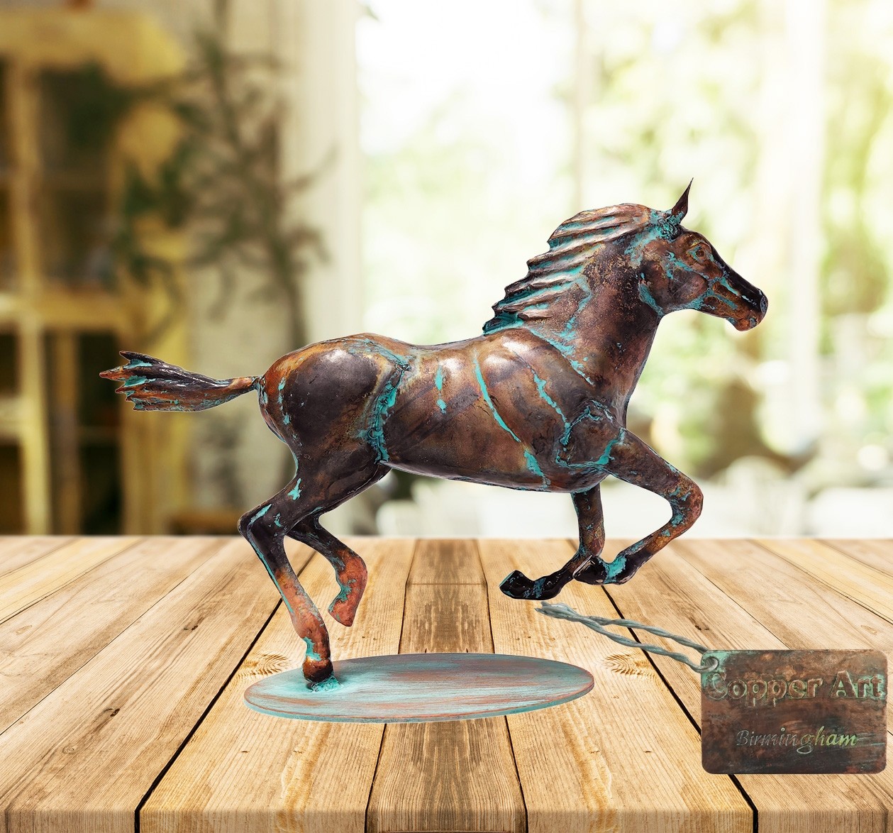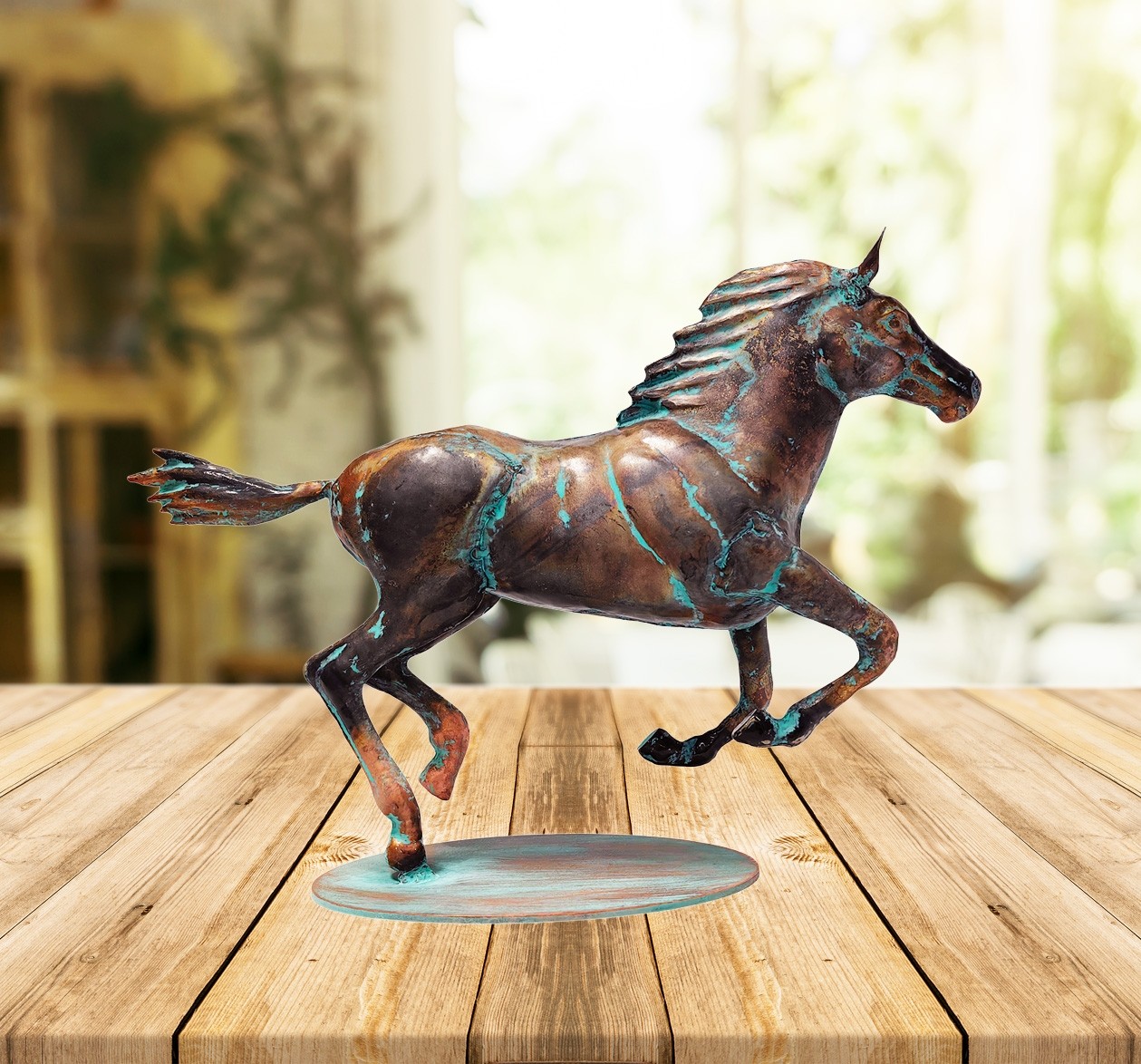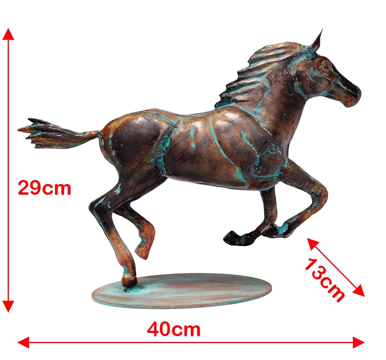 40cm Aged Copper/Verdigris Finish 3D Horse Statue On Heavy Metal Base