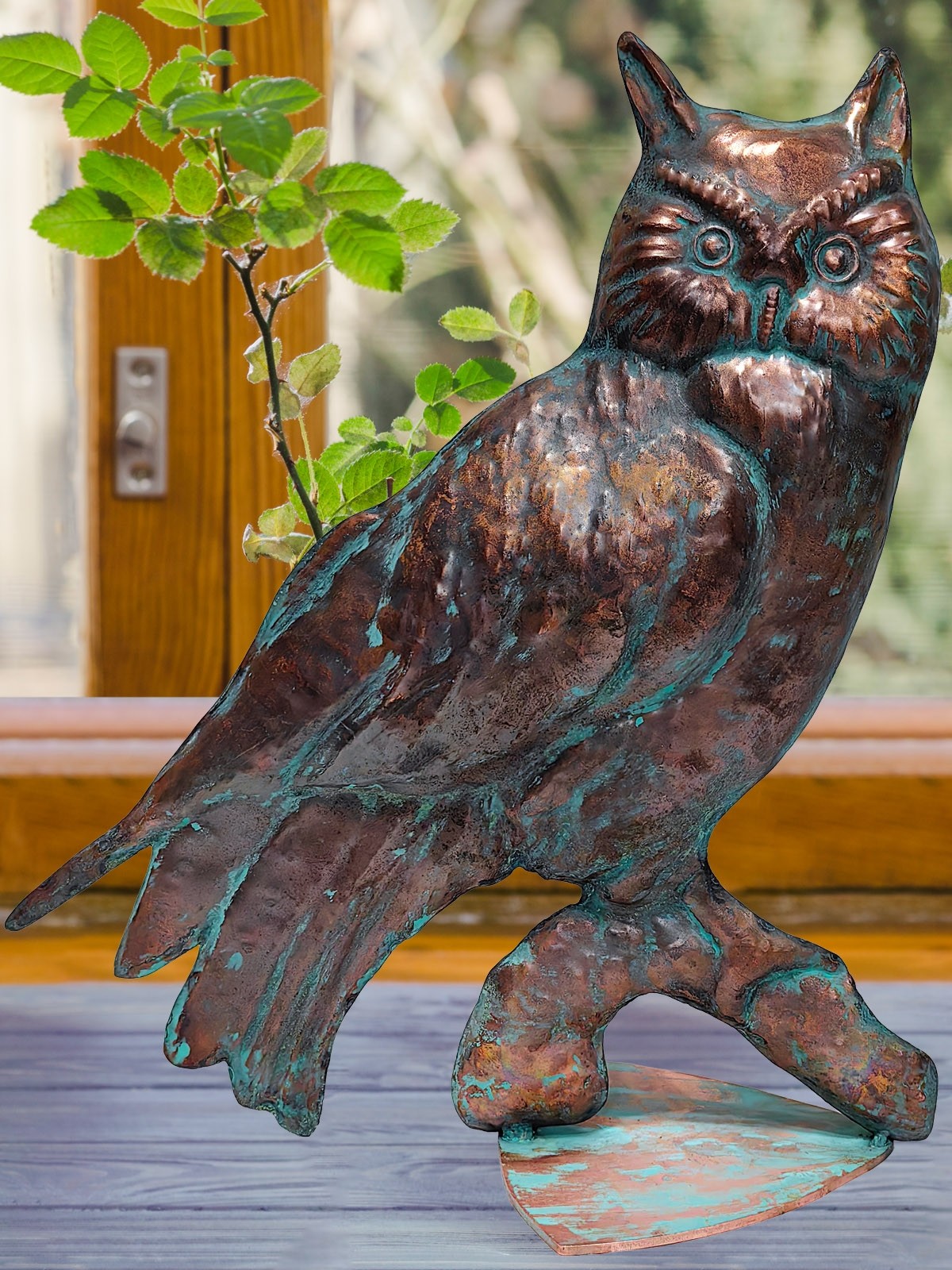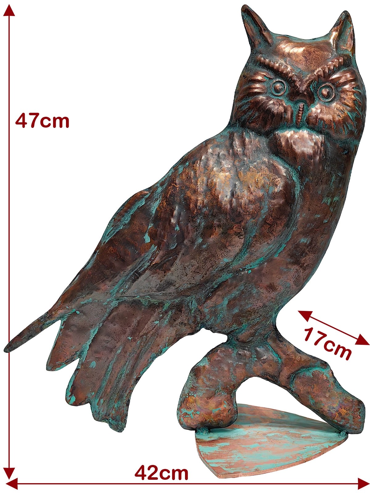 47cm Aged Copper/Verdigris Finish 2D Owl Statue On Heavy Metal Base