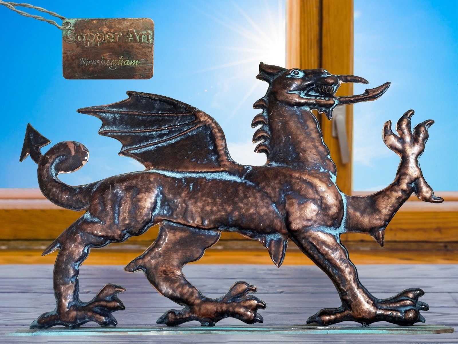 48cm Aged Copper/Verdigris Finish 1D Dragon Statue On Heavy