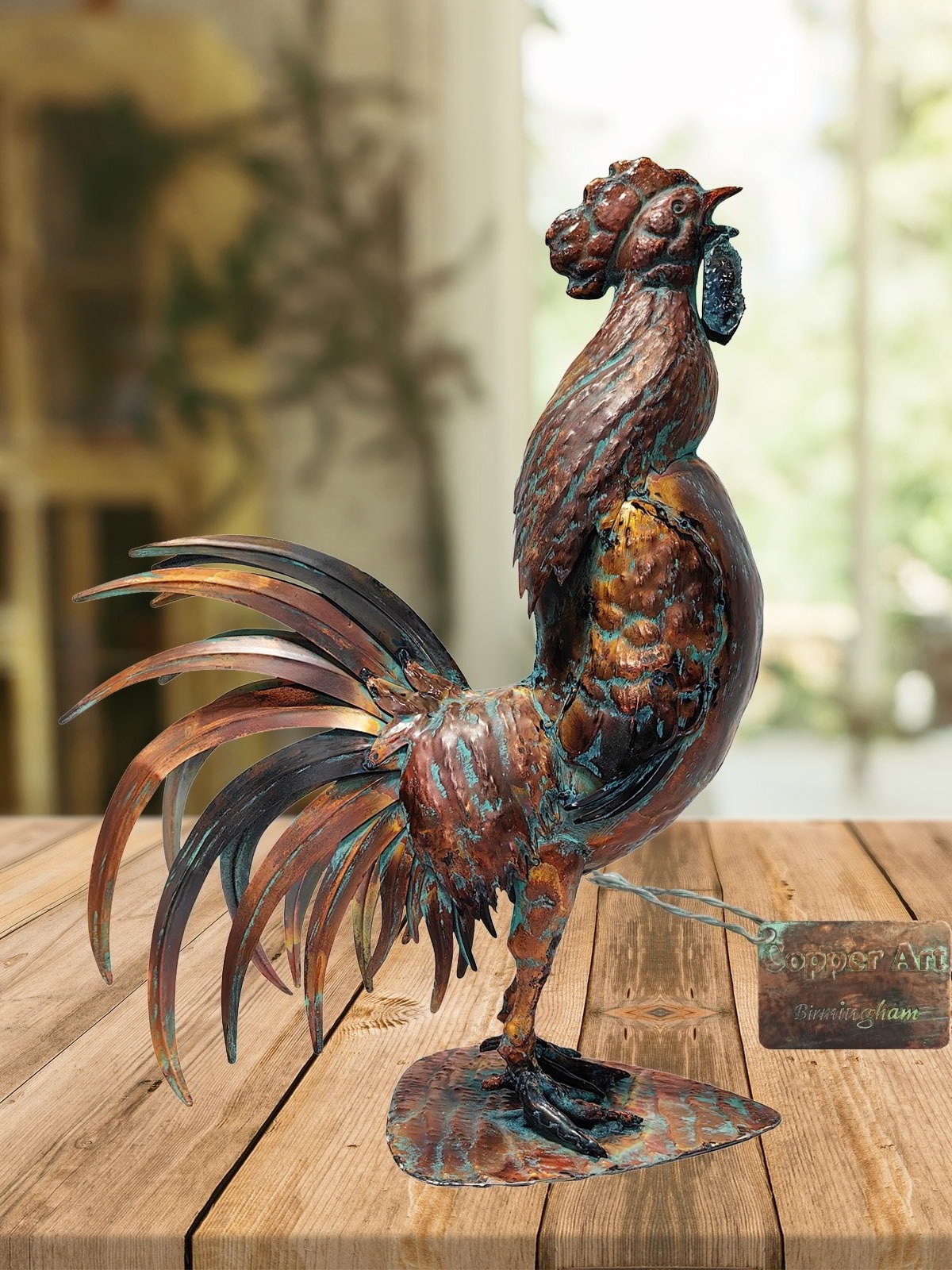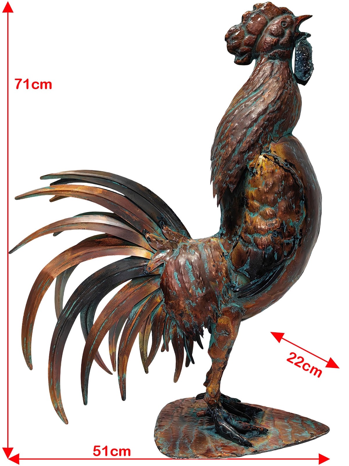 71cm Aged Copper/Verdigris Finish 3D Rooster Statue On Heavy Metal Base