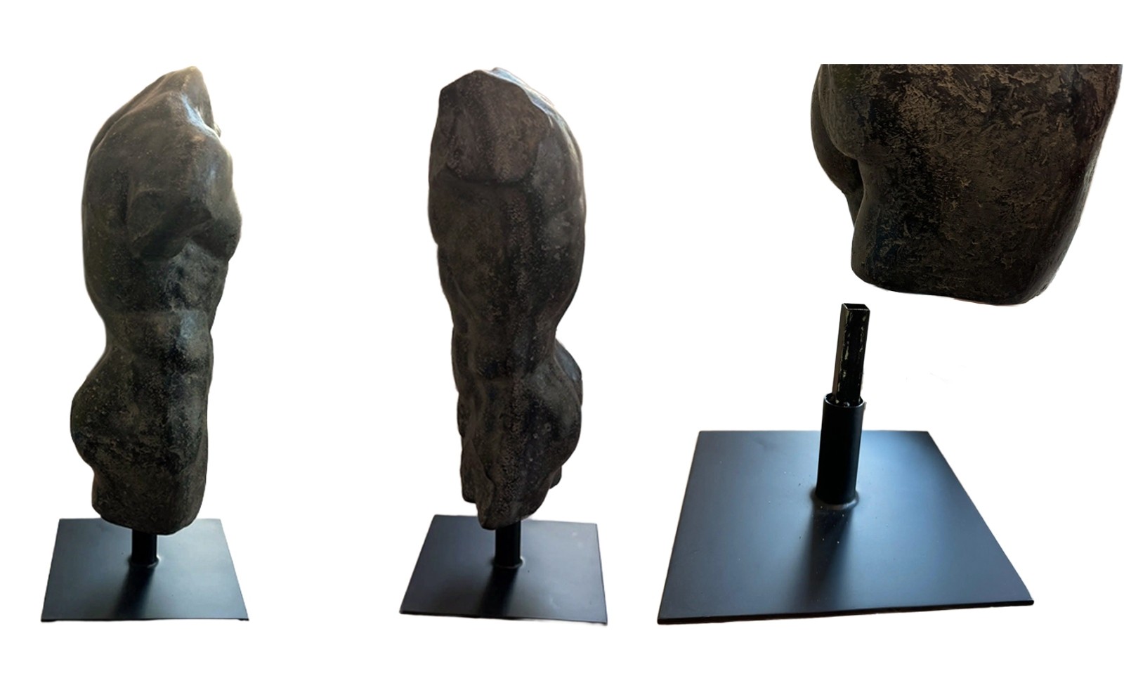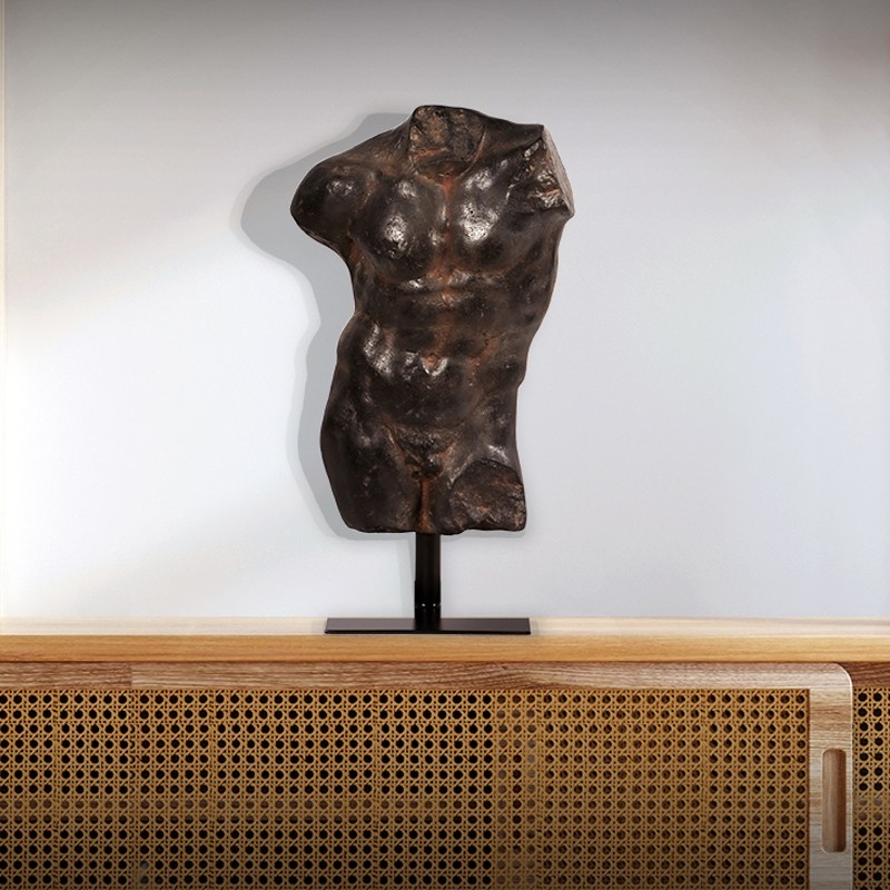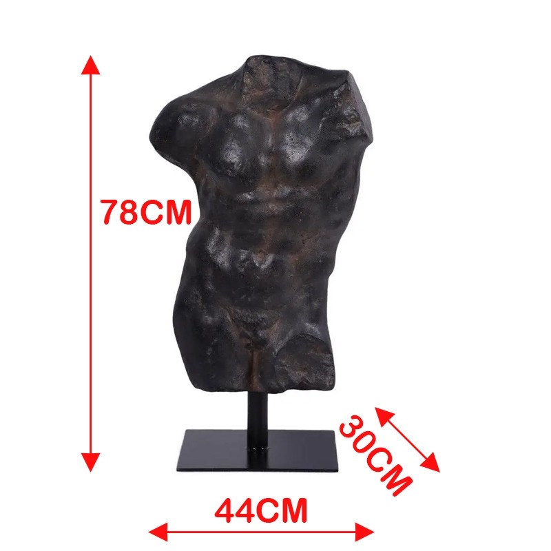 Andrea Male Torso - Aged Black Stone - 78cm