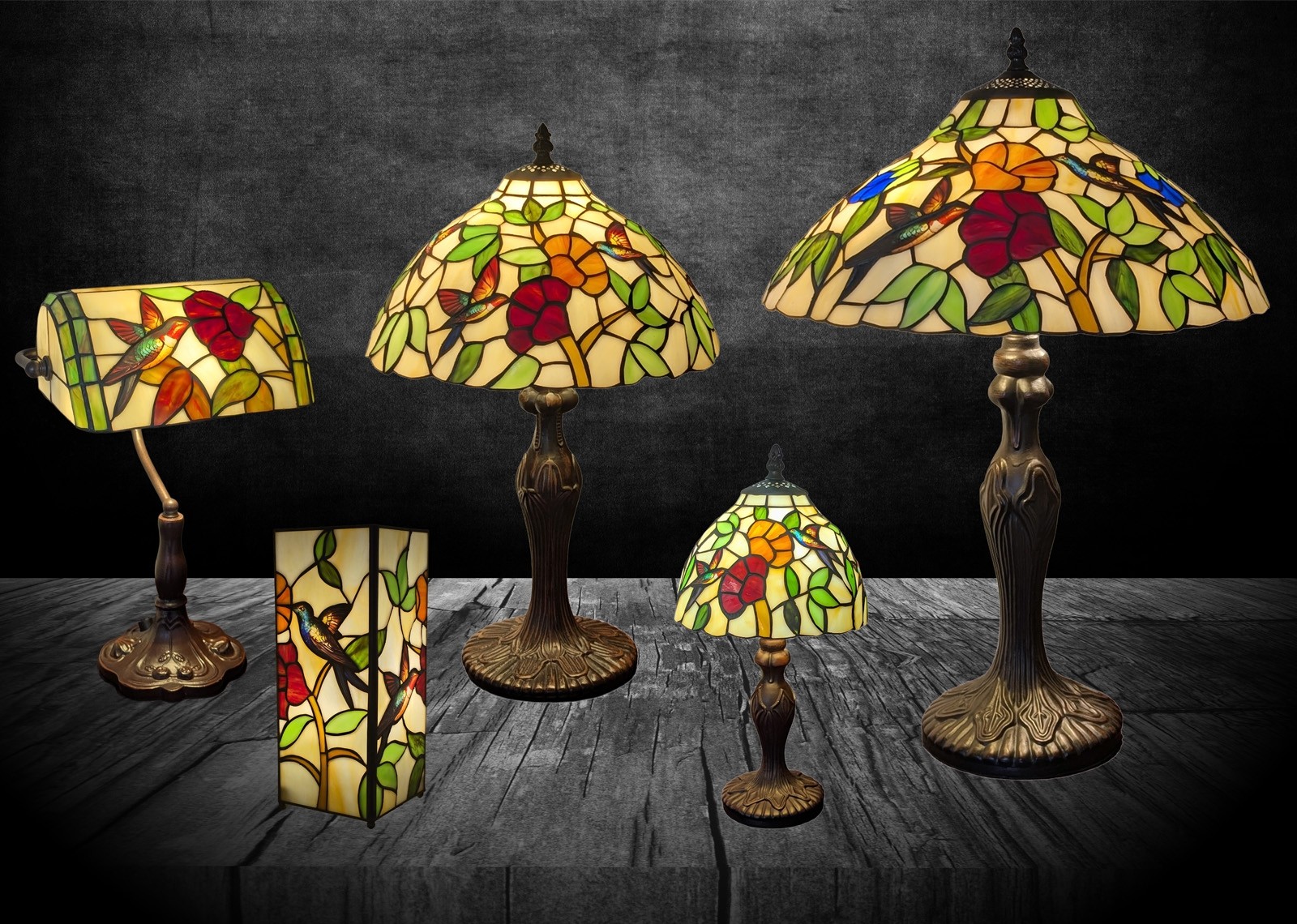Bankers Lamp - Humming Bird Design 37cm