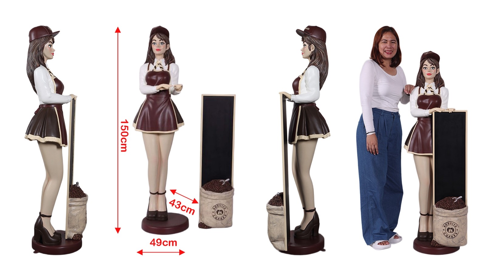Item Measurements (cm) Height Width Depth Origin Philippines Overall 150 49 43 Materials Used Hollow Cast Fibreglass/Resin - - - - Construction Assembled Packaging Details Qty NW (kg) GW (Kg) CBM Box 1 13.40 17.80 0.3691 Case 1 13.40 17.80 0.3691 - Delivery