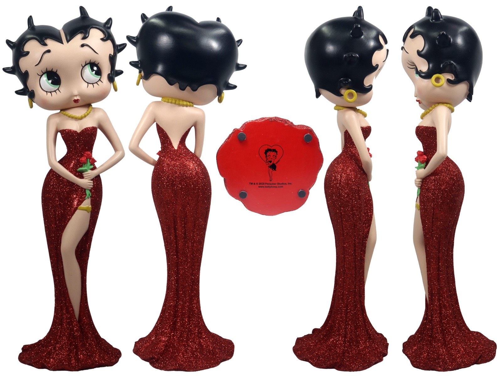 Betty Boop Holding Flowers Red Glitter Dress 38cm