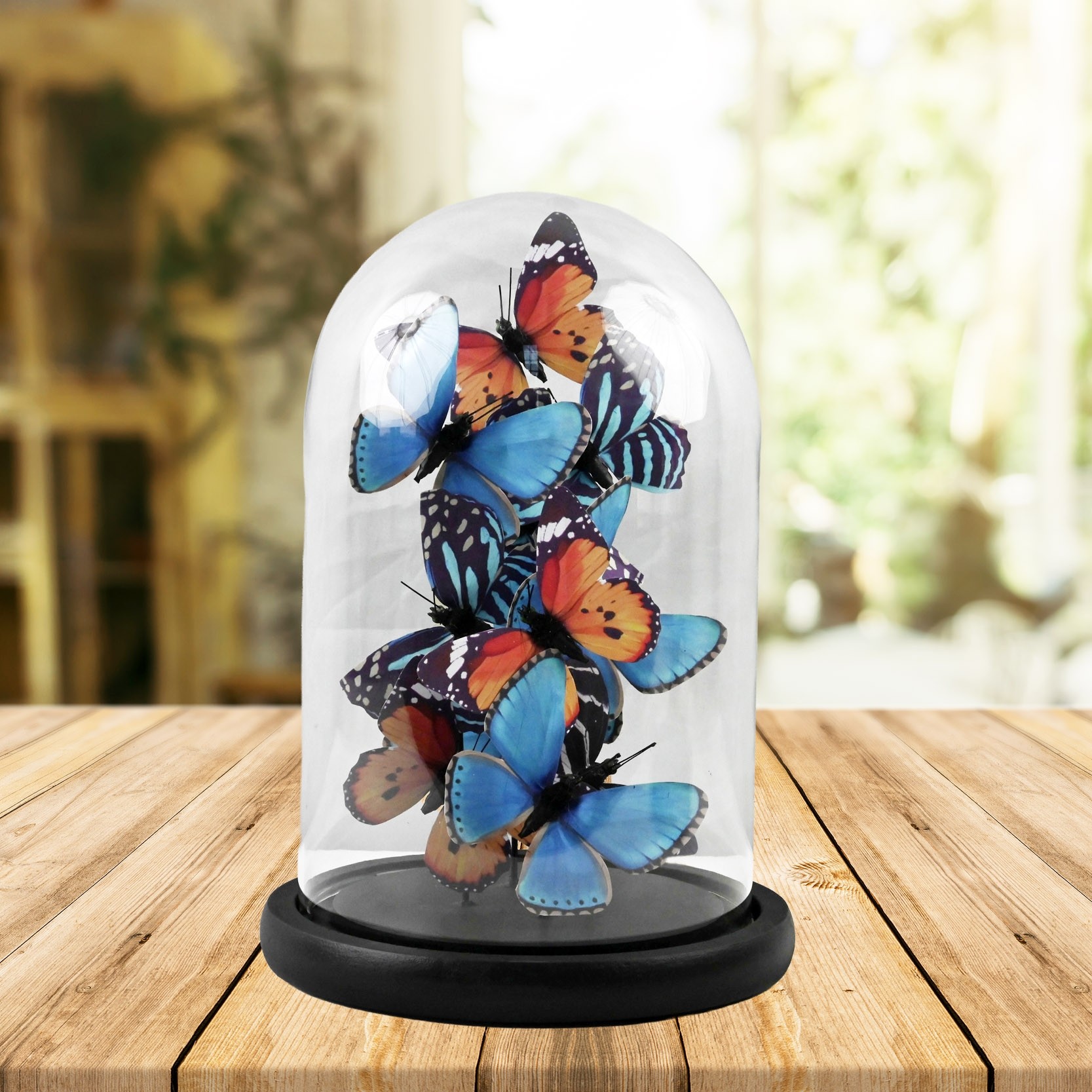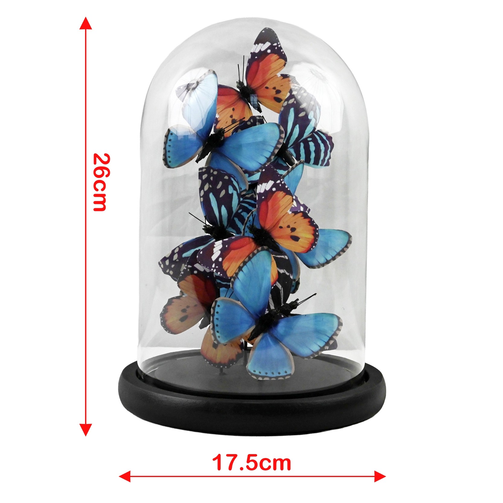 Blue, Black and Orange Butterflies In Glass Dome - 26 x 17.5cm