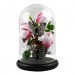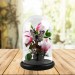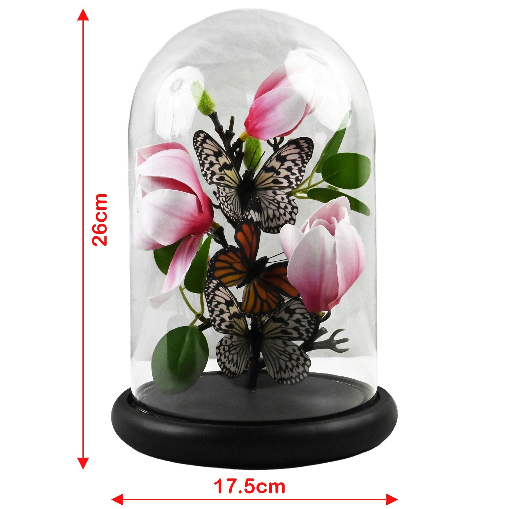 Butterflies on Pink and White Flowers In Glass Dome - 26 x 17.5cm