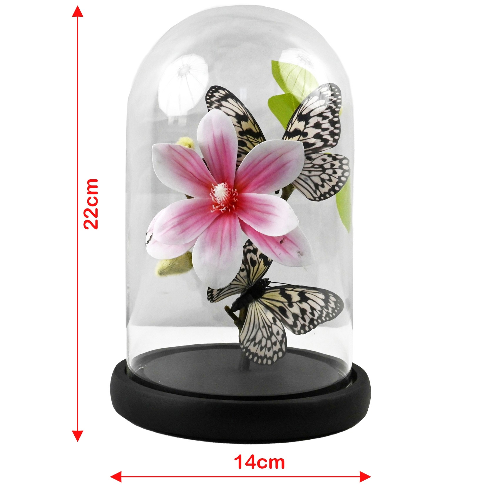 Butterflies on Pink Flowers In Glass Dome - 22 x 14cm