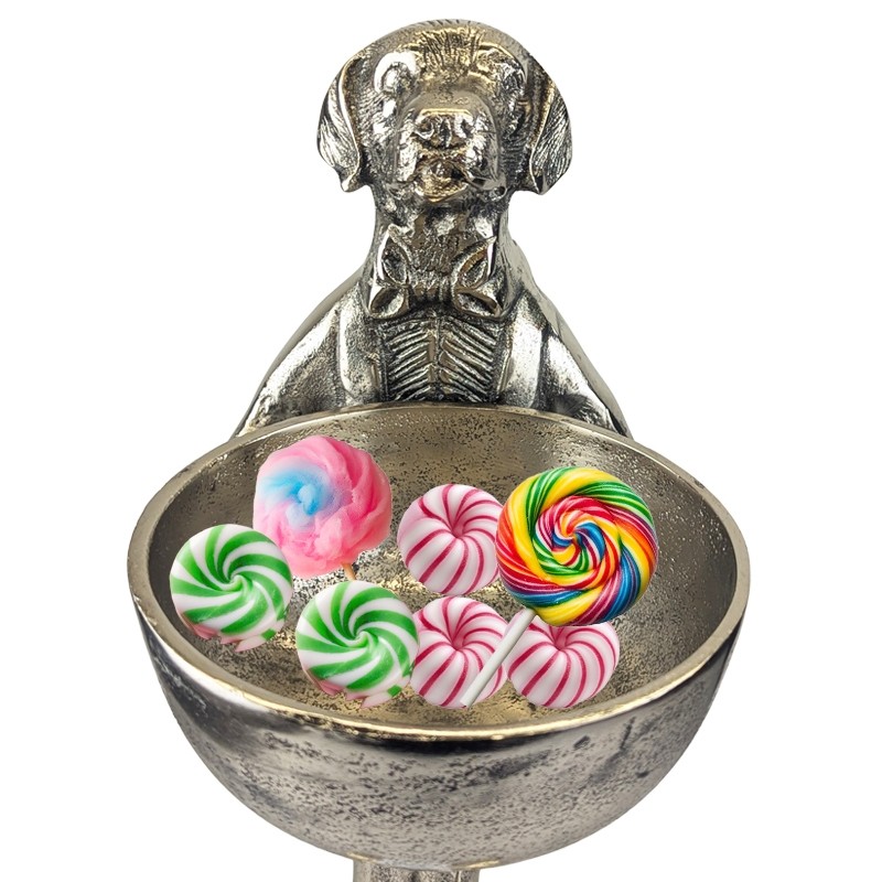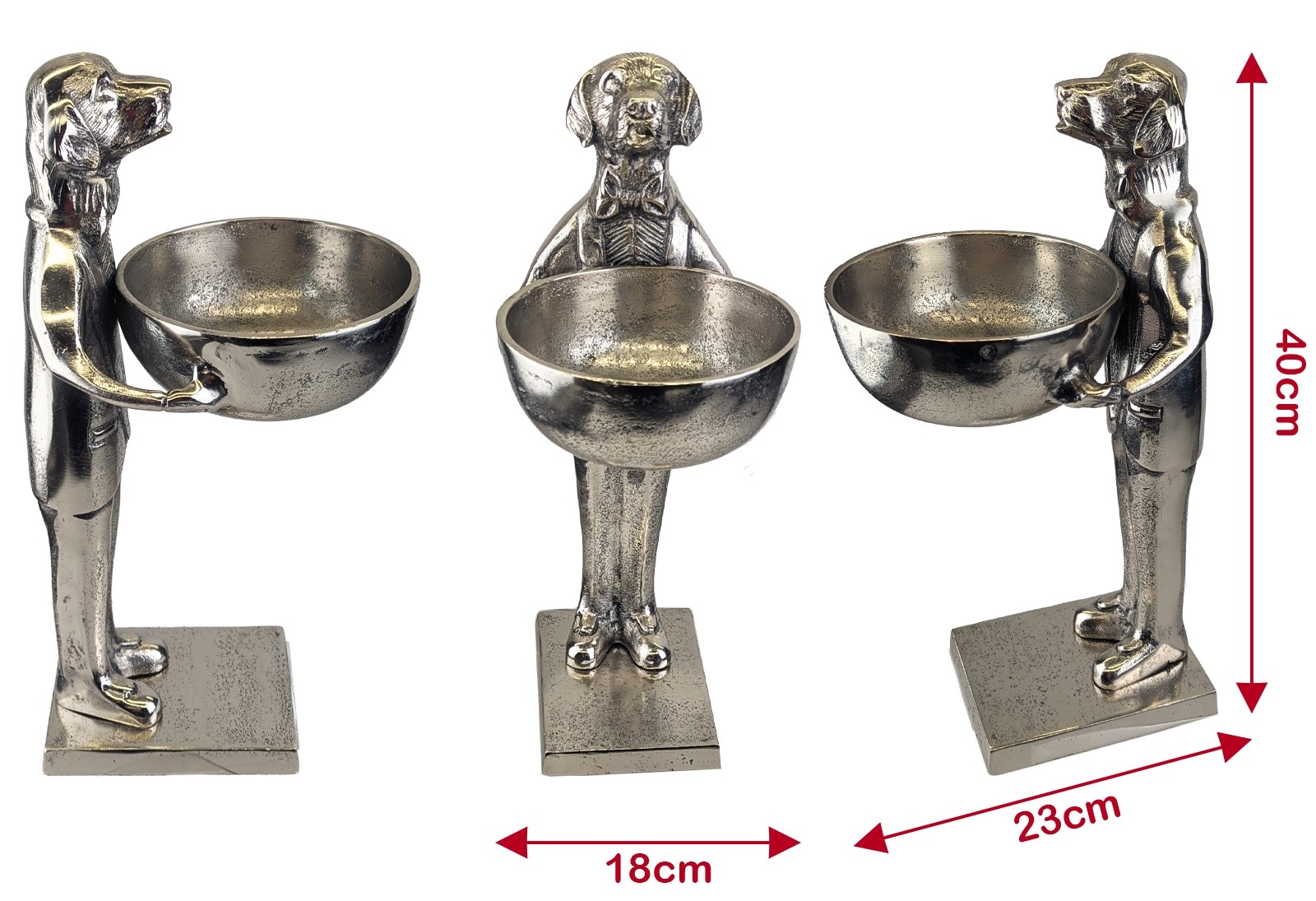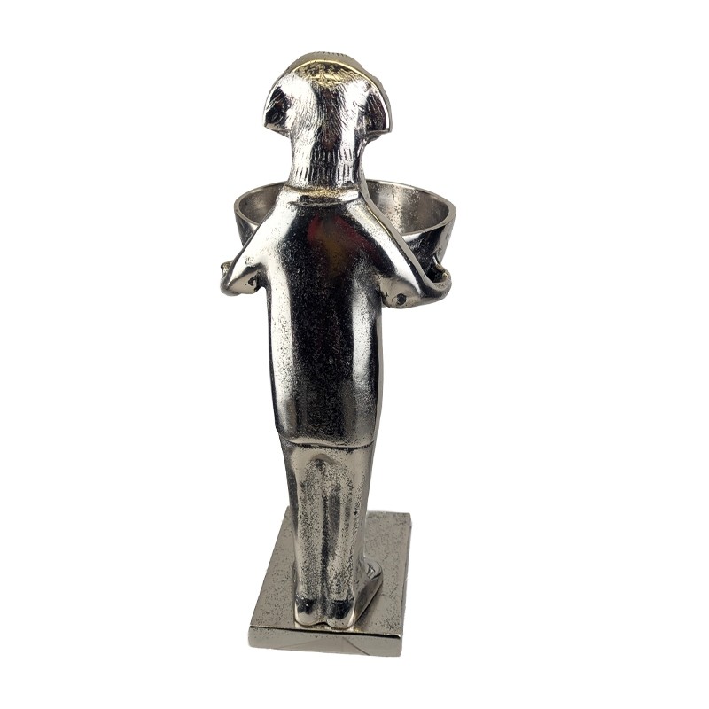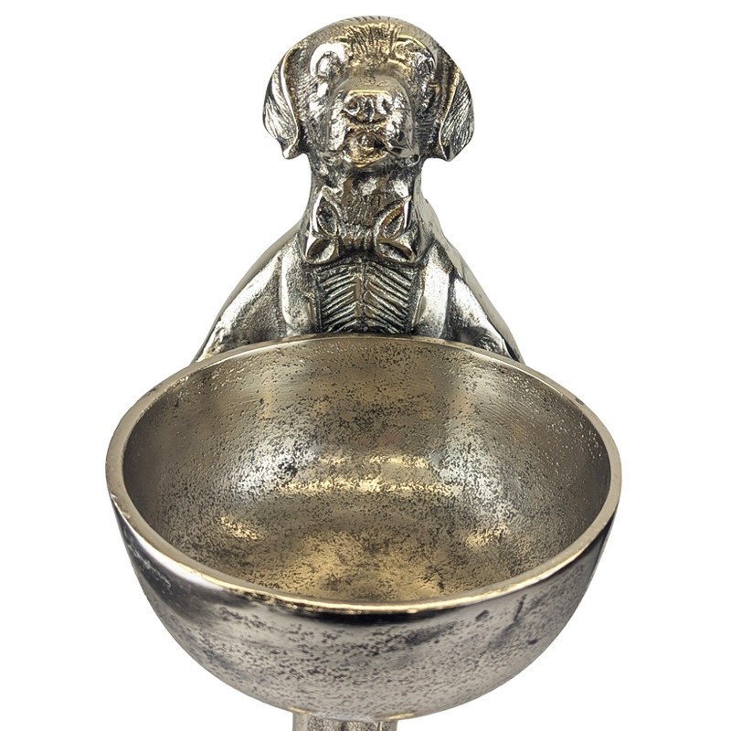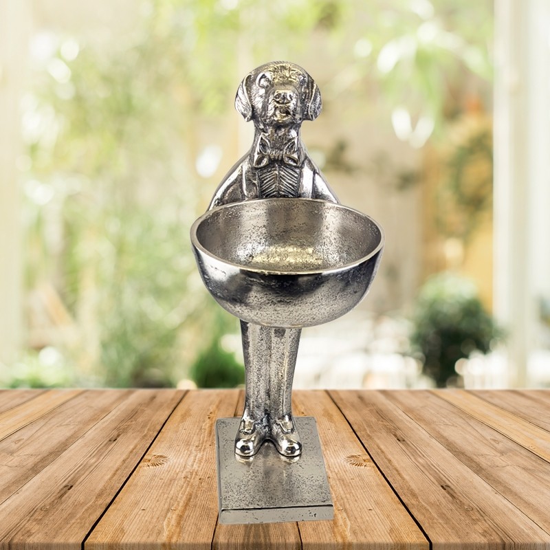 Dog With Bowl - 40cm Nickel Plated Aluminium