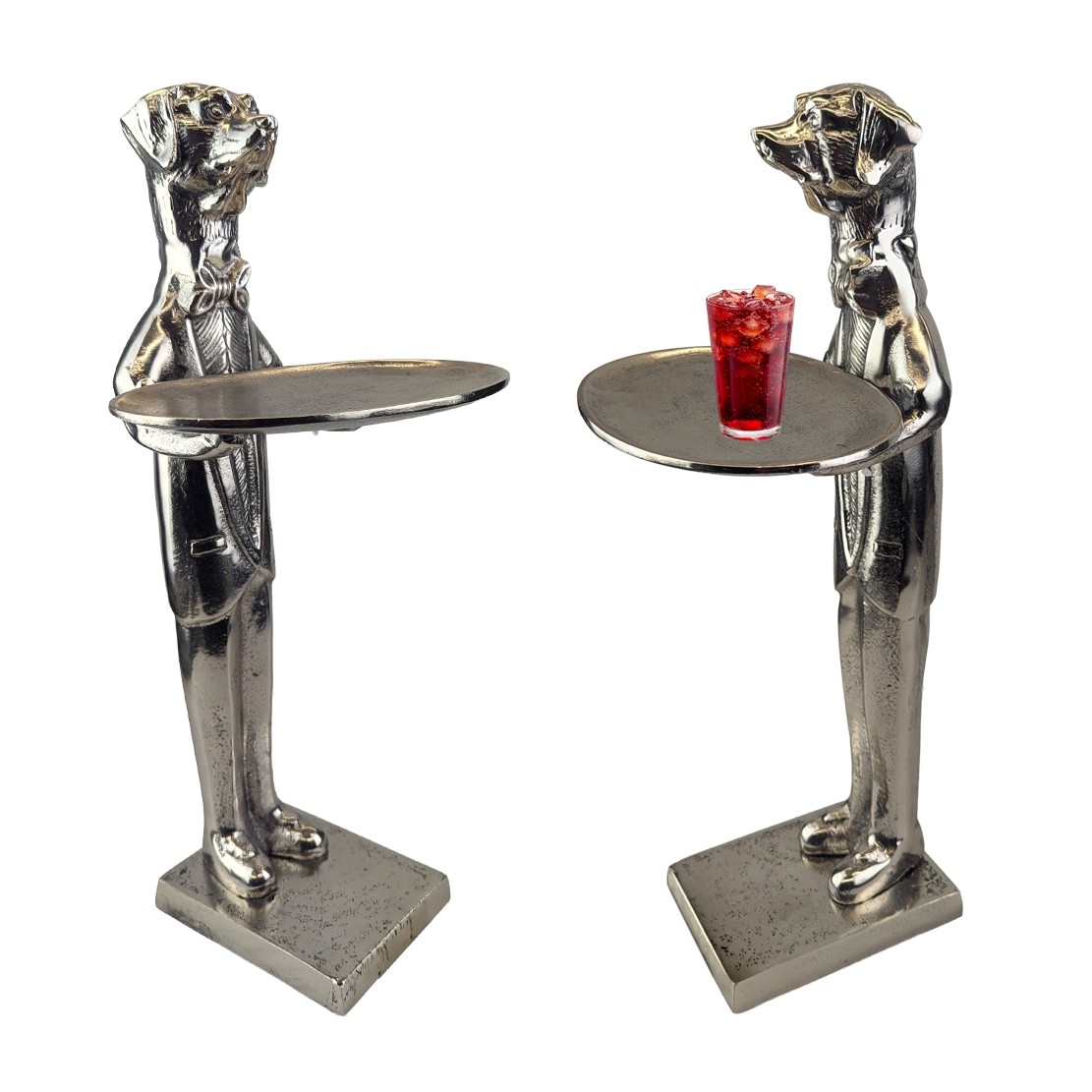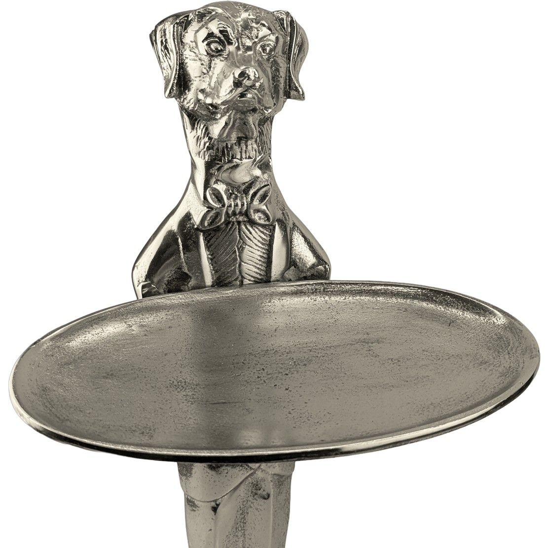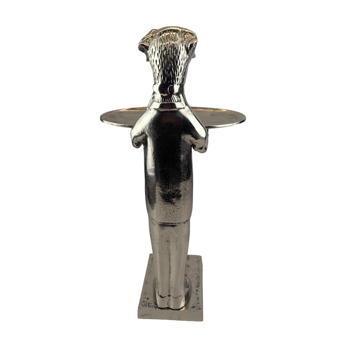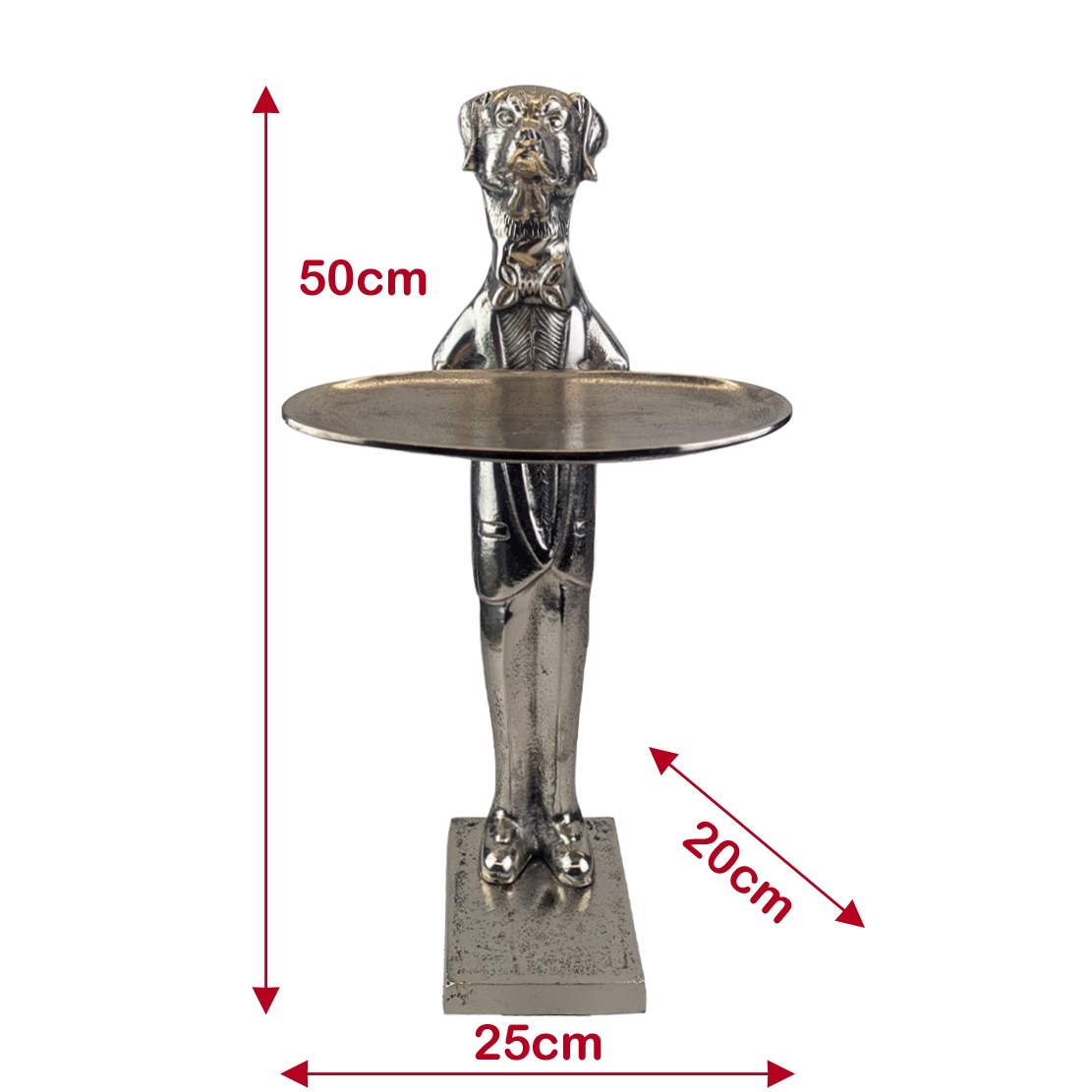 Dog With Plate - 50cm Nickel Plated Aluminium