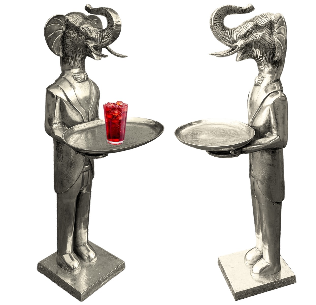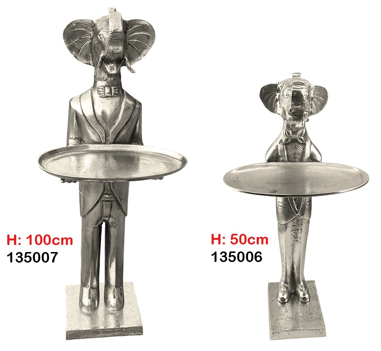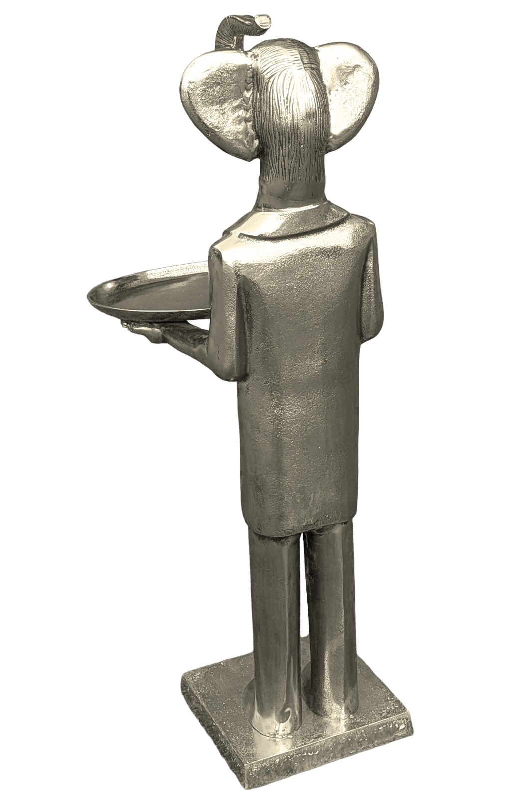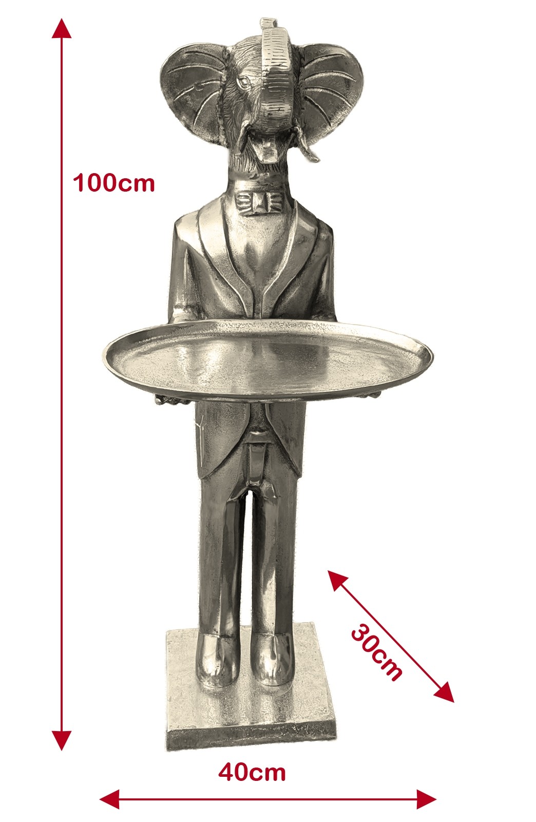 Elephant With Plate - 100cm Nickel Plated Aluminium