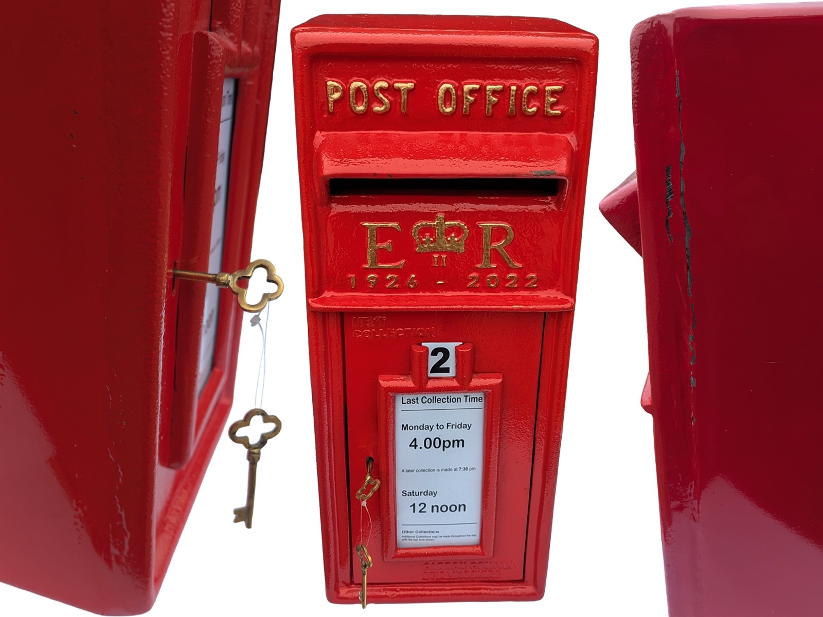 Post boxes are cast-iron front and steel back - with 2 keys.