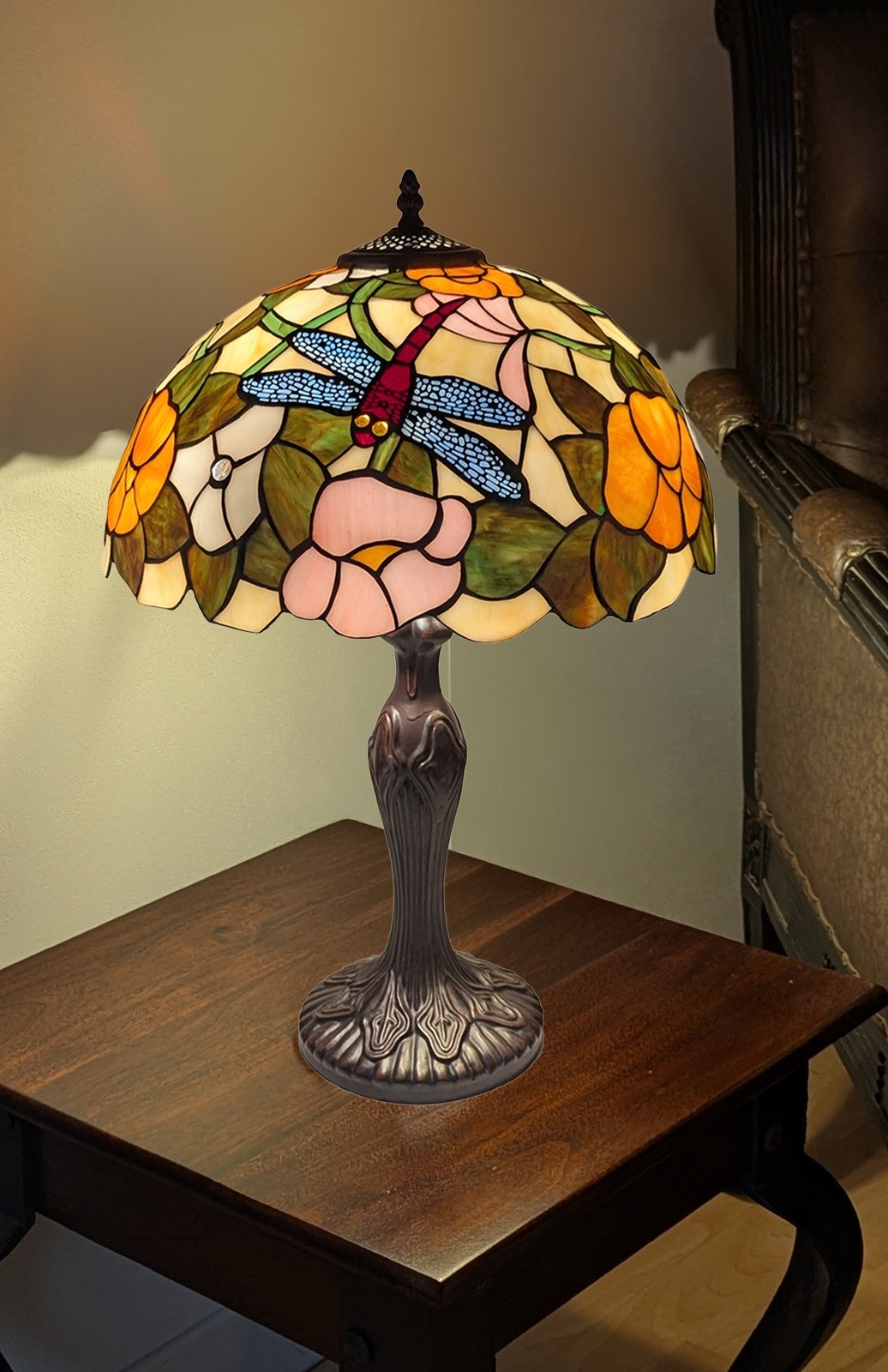 Flower and Dragonfly Tiffany Table Lamp 47cm (Medium)