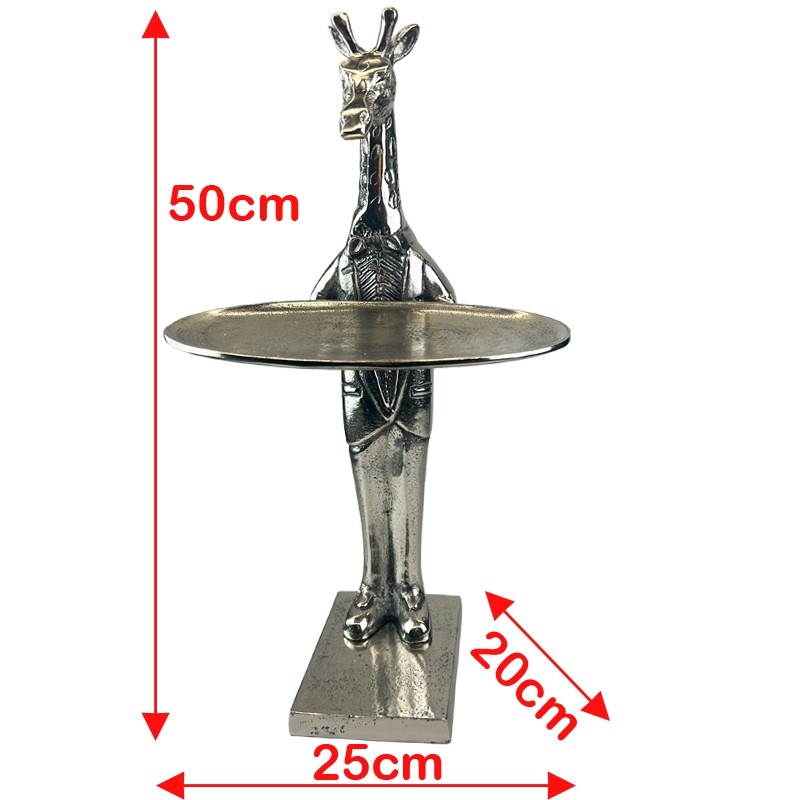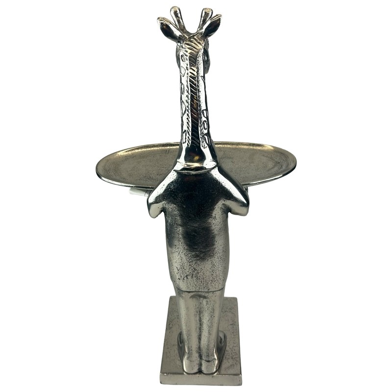 Giraffe With Plate - 50cm Nickel Plated Aluminium