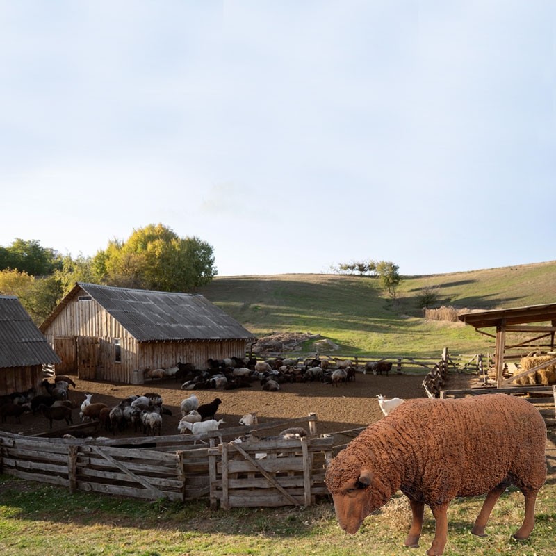 Made from Fibreglass and Resin - Outer layer impregnated with Iron fillings. The longer it stays outside the rustier it becomes.