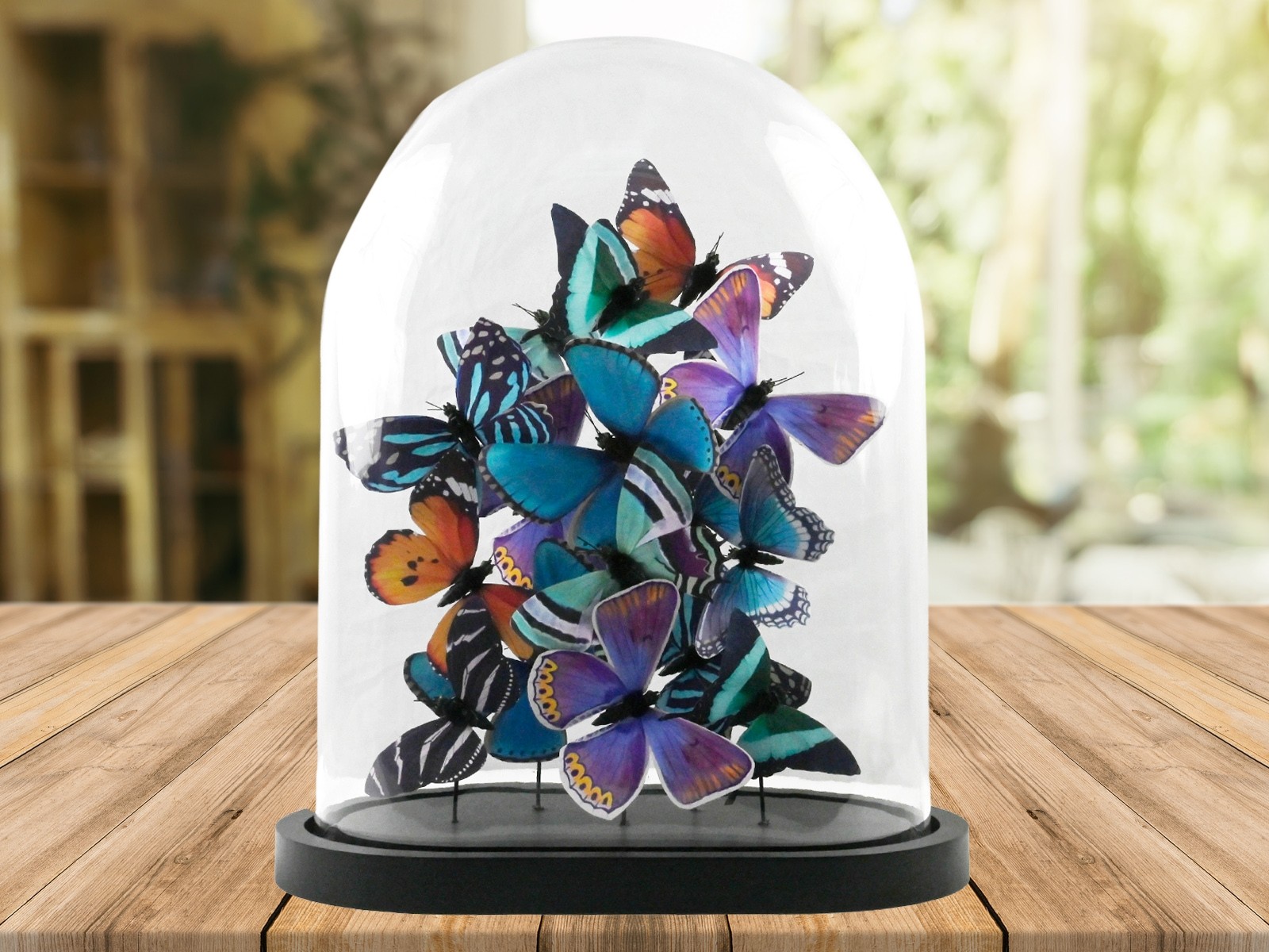 Multicoloured Butterflies In Glass Dome - 41.5 x 33.5cm