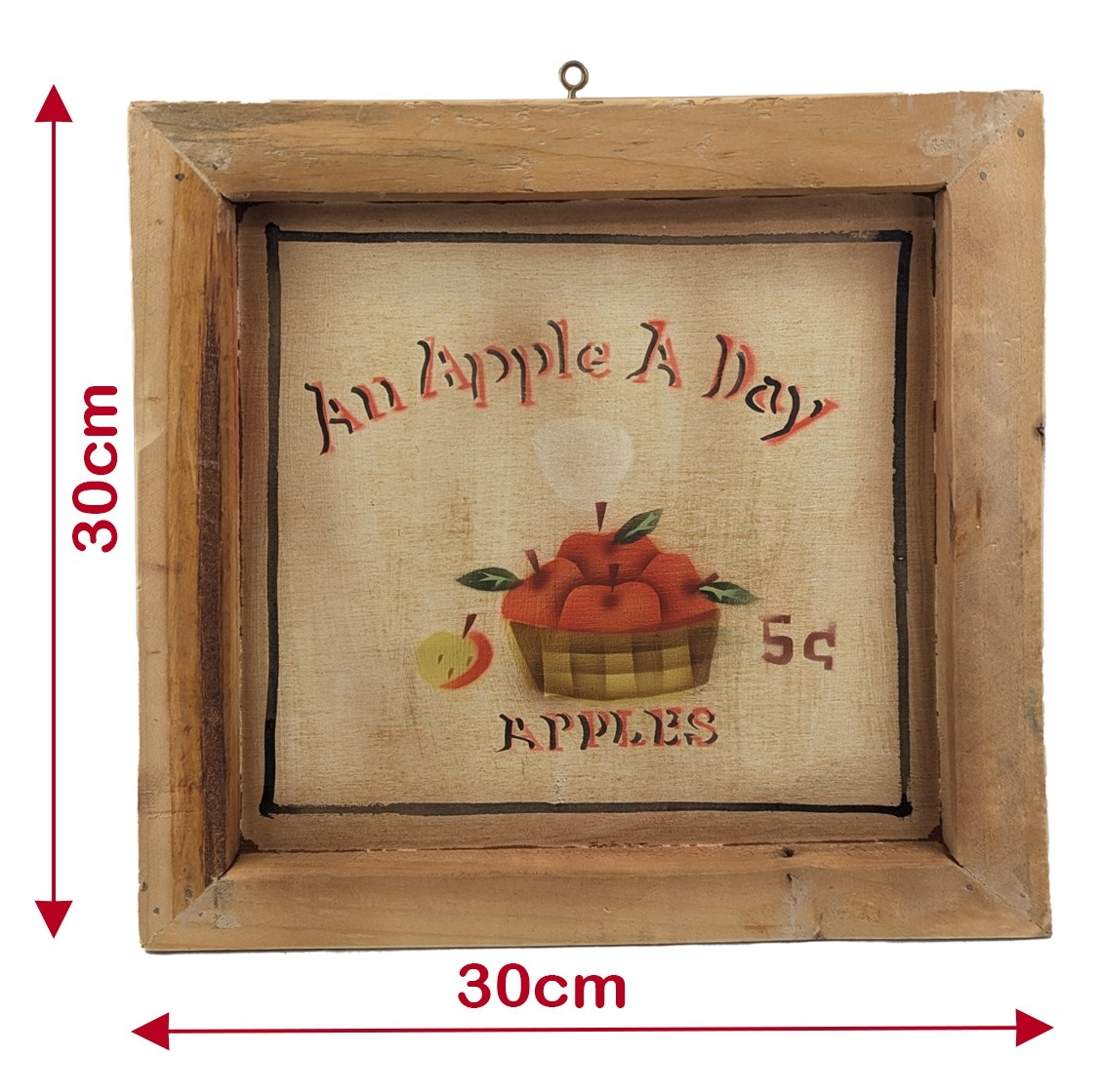 Rustic Wooden Square Wall Frame An Apple A Day Assorted - 30cm