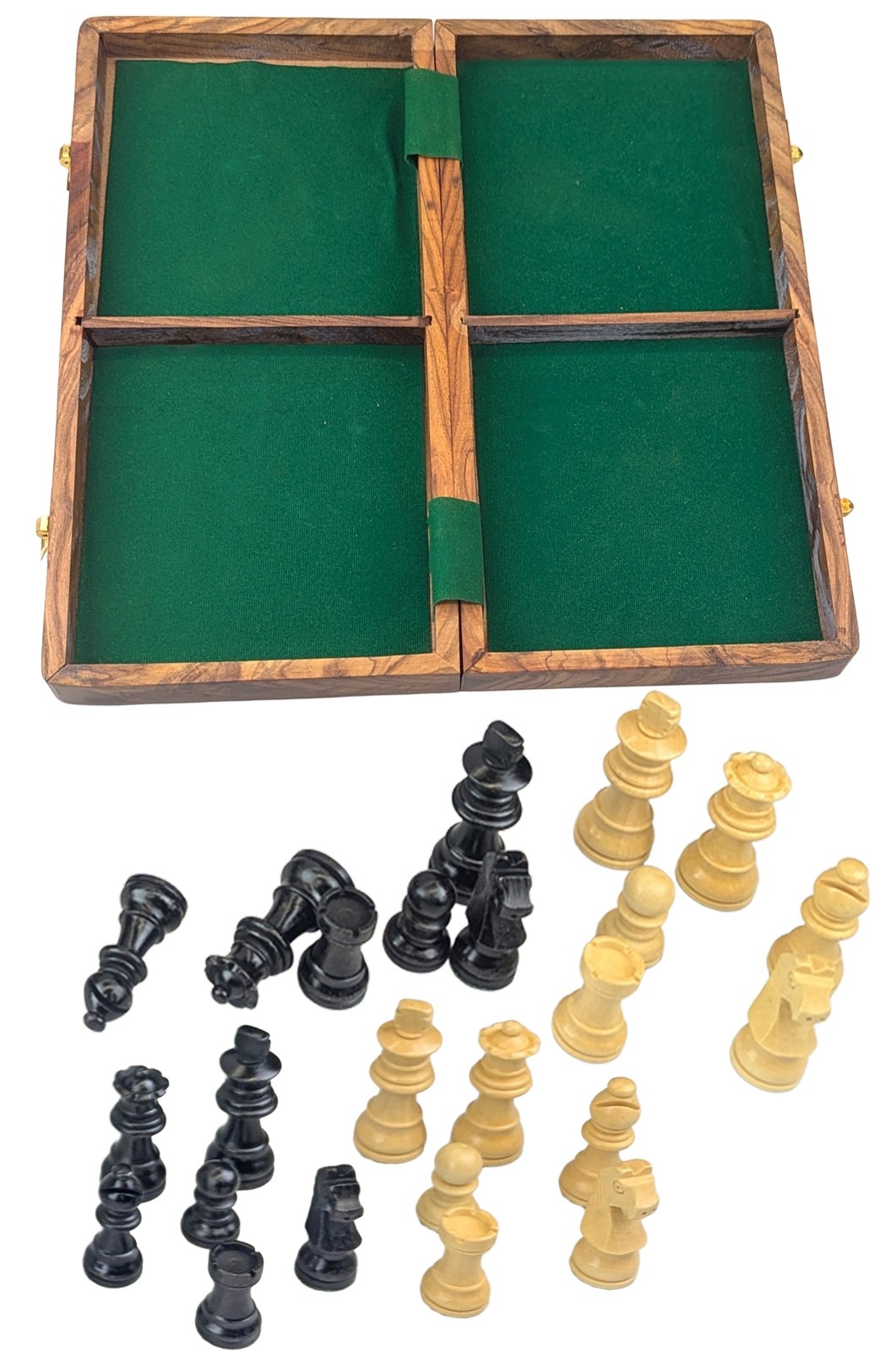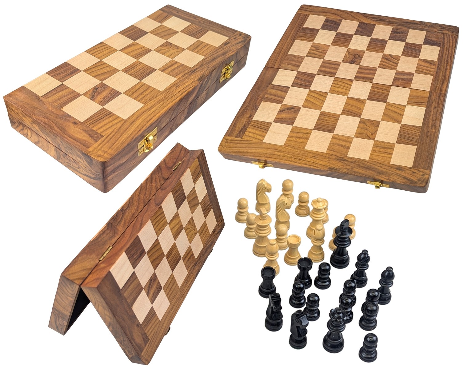 Sheesham Wood - Folding Chess Board with Pieces 30cm