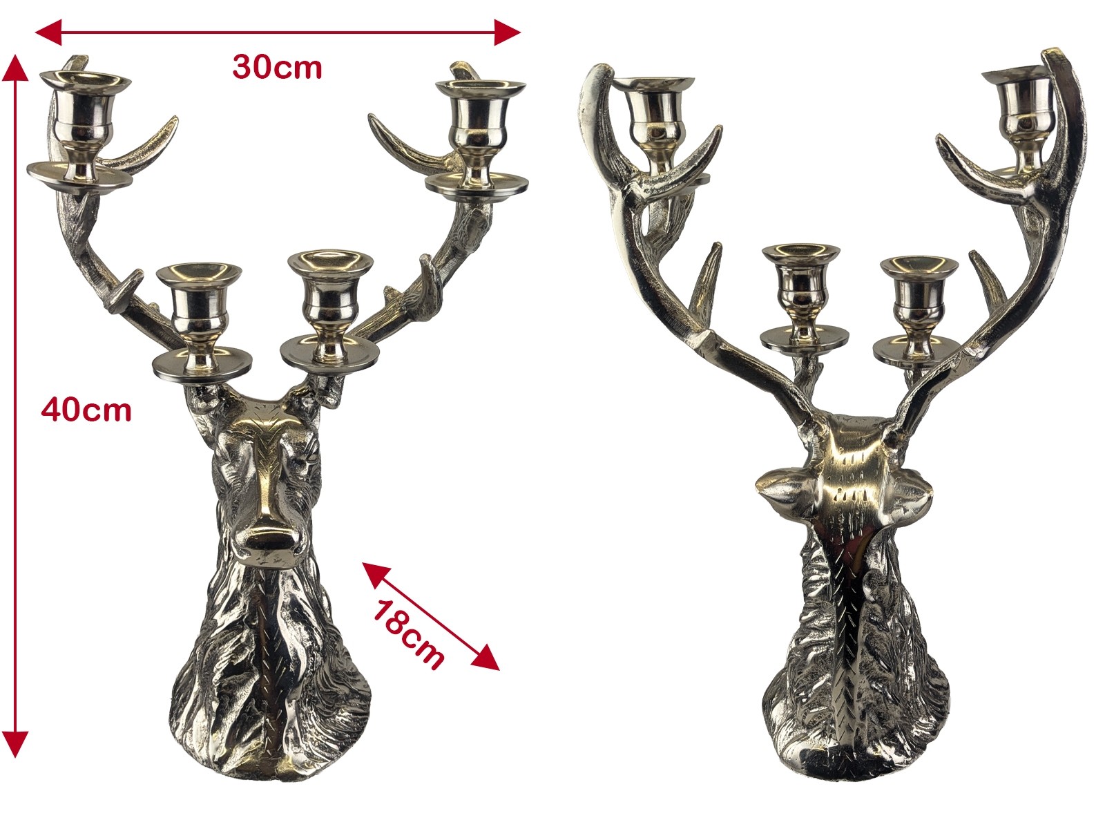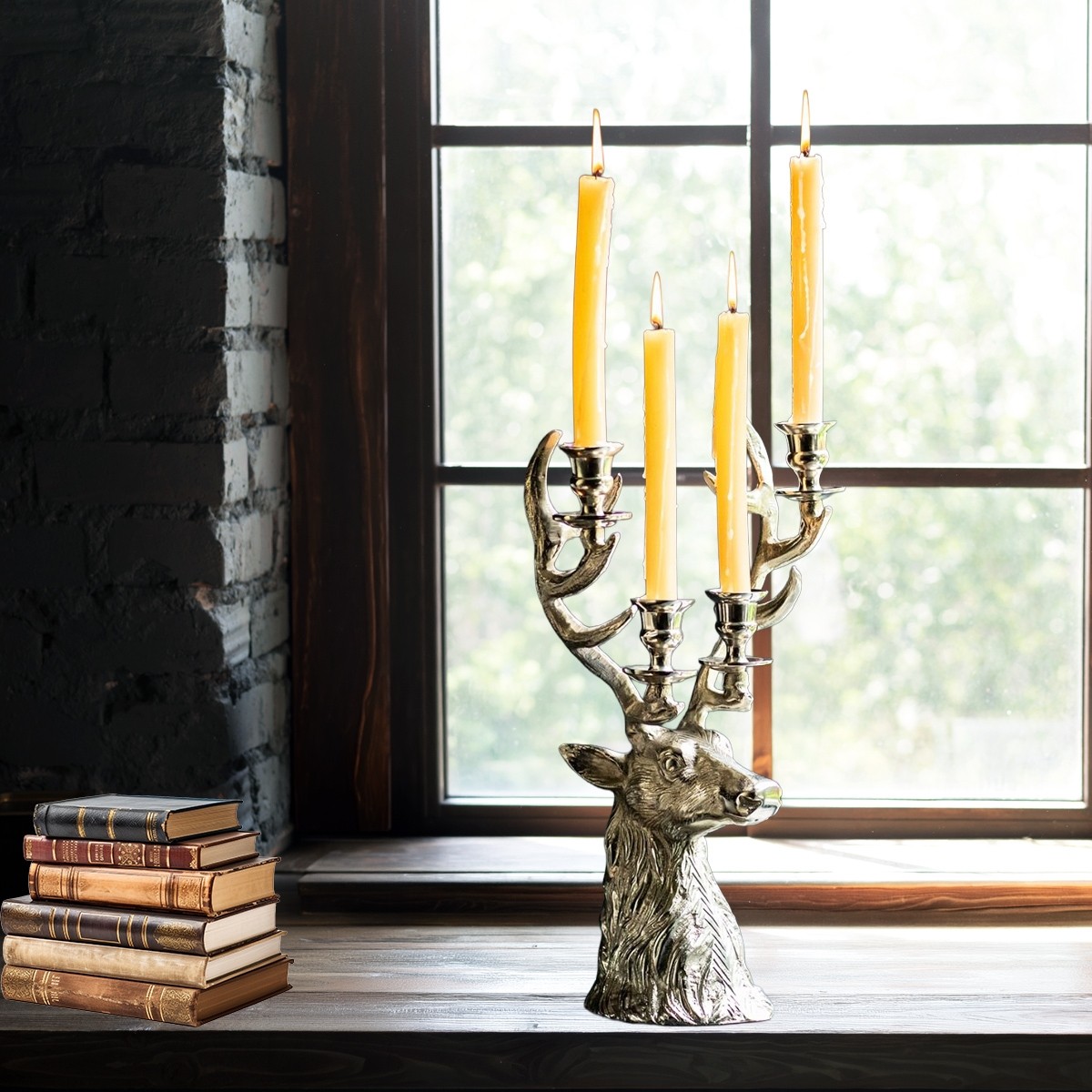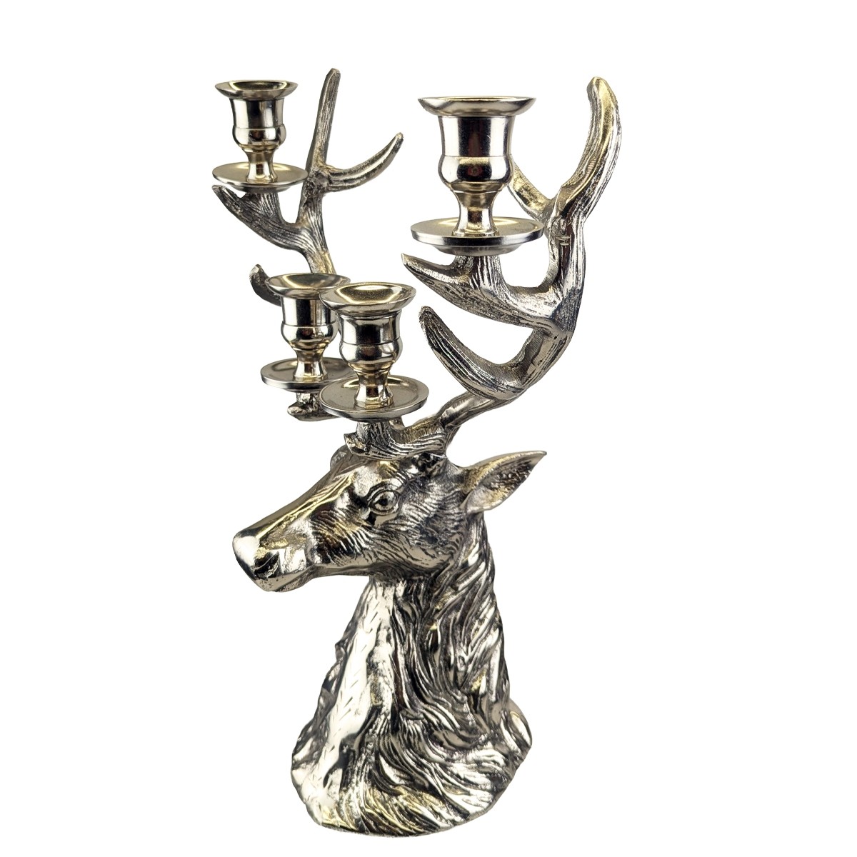 Stag Head Taper 4-Tier Candle Holder 40cm - Nickel Plated Aluminium