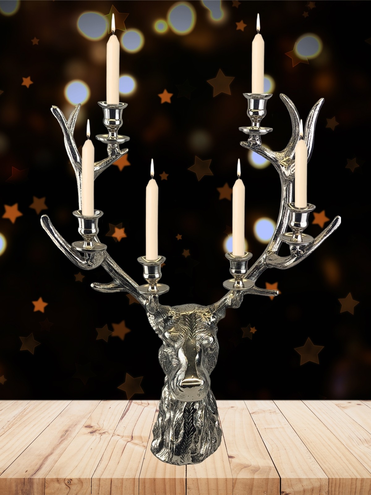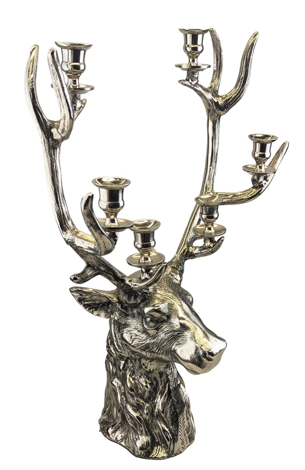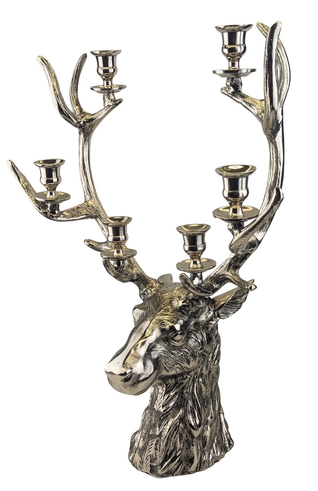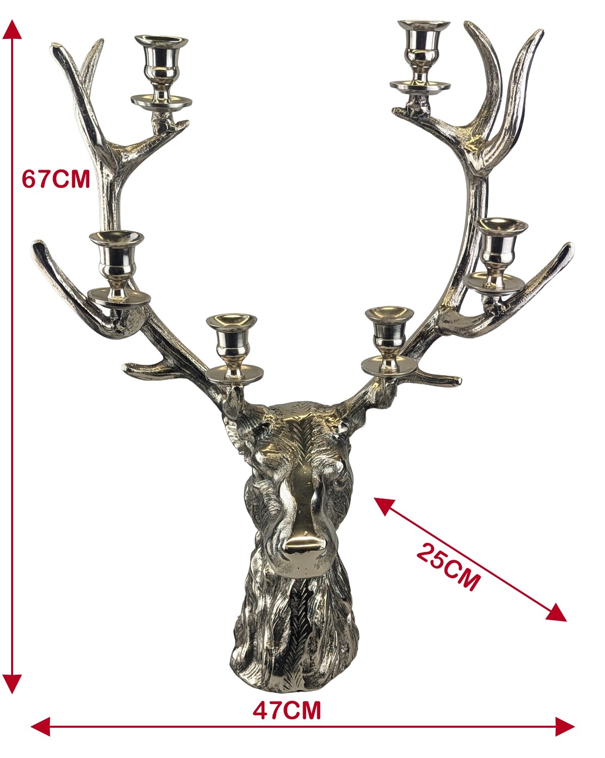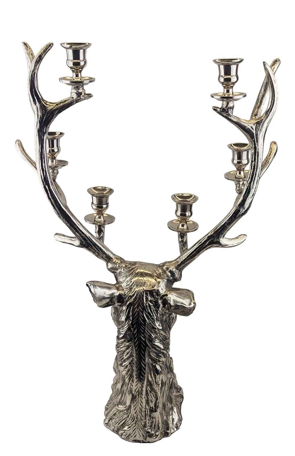 Stag Head Taper 6-Tier Candle Holder 67cm - Nickel Plated Aluminium