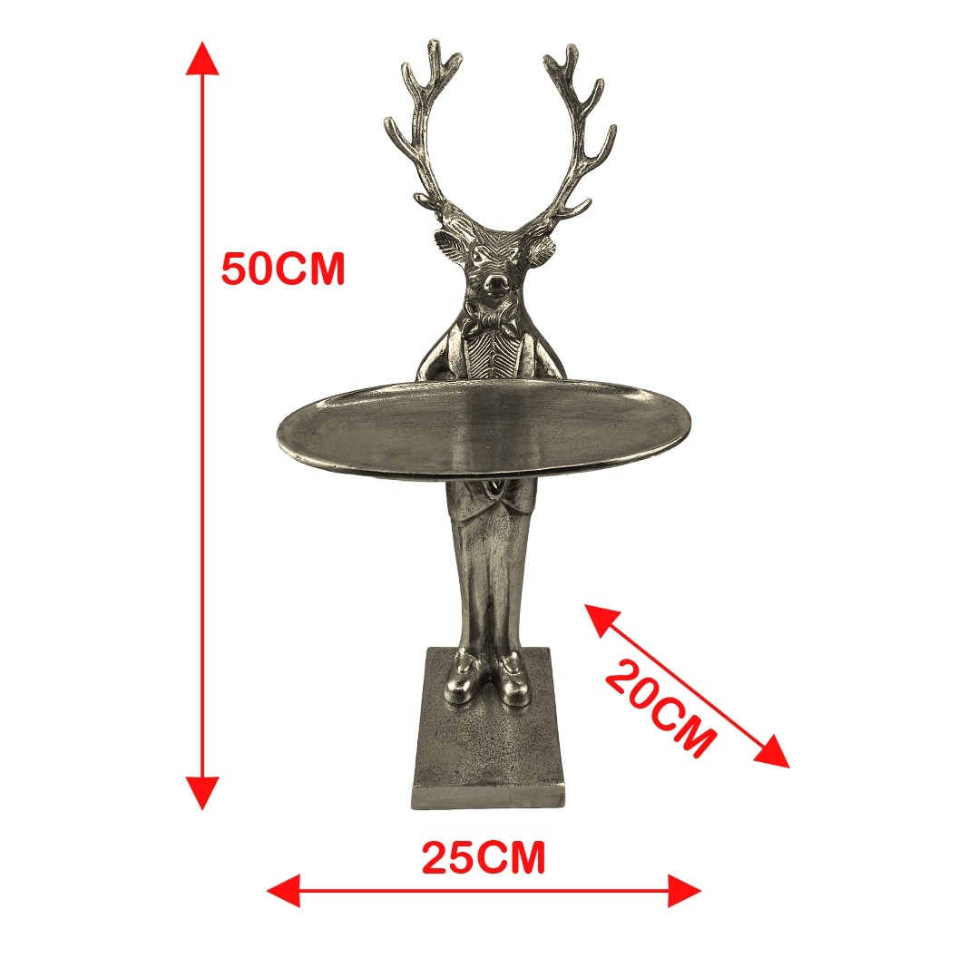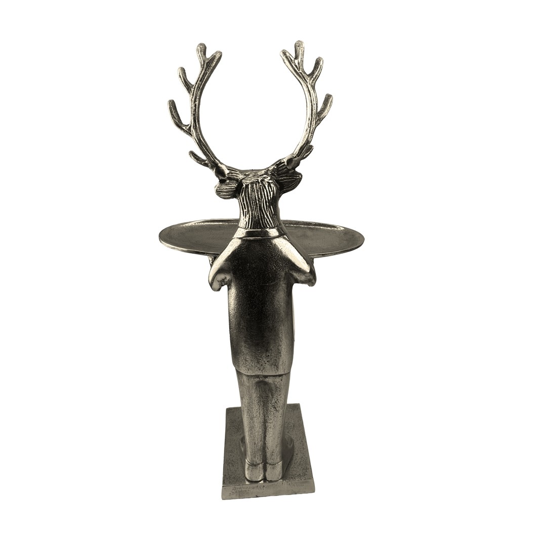 Stag With Plate - 50cm Nickel Plated Aluminium